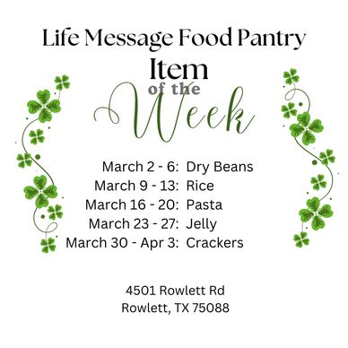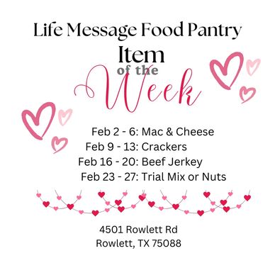 Each week we will be asking for specific food items that are needed in our food pantry.
